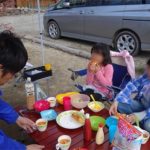 ちなみに幕内には帰らせず、みんな揃って屋外で朝食を食べました!!