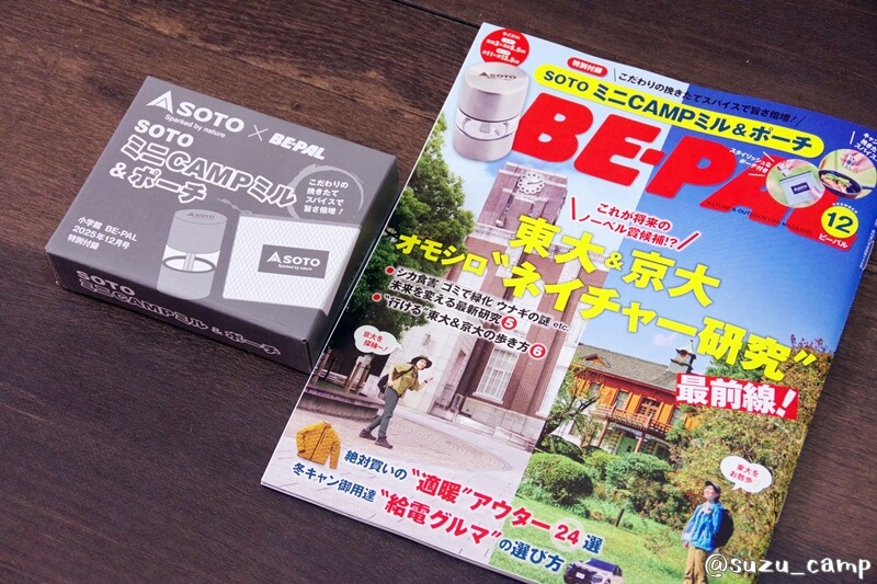 SOTO × BE-PALの「ミニCAMPミル&ポーチ」も最高に気になるところですが、今回はその最終頁に掲載されていた次号・2026年1月号(12月9日発売)付録の予告をチェックしていきましょう。
