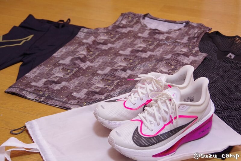 今回の本命シューズは、NIKE Zoom Fly 6。4月のかすみがうらマラソンでも使用した、信頼と実績の1足です。