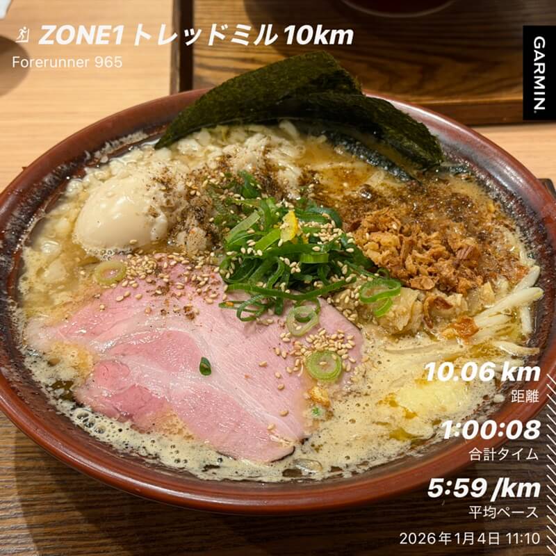 1月1日(木)|ZONE1 有酸素ジョグ 4km